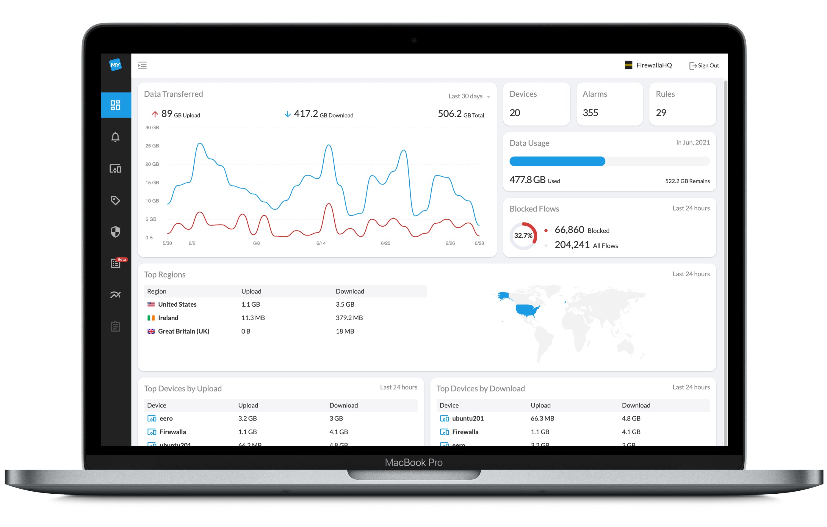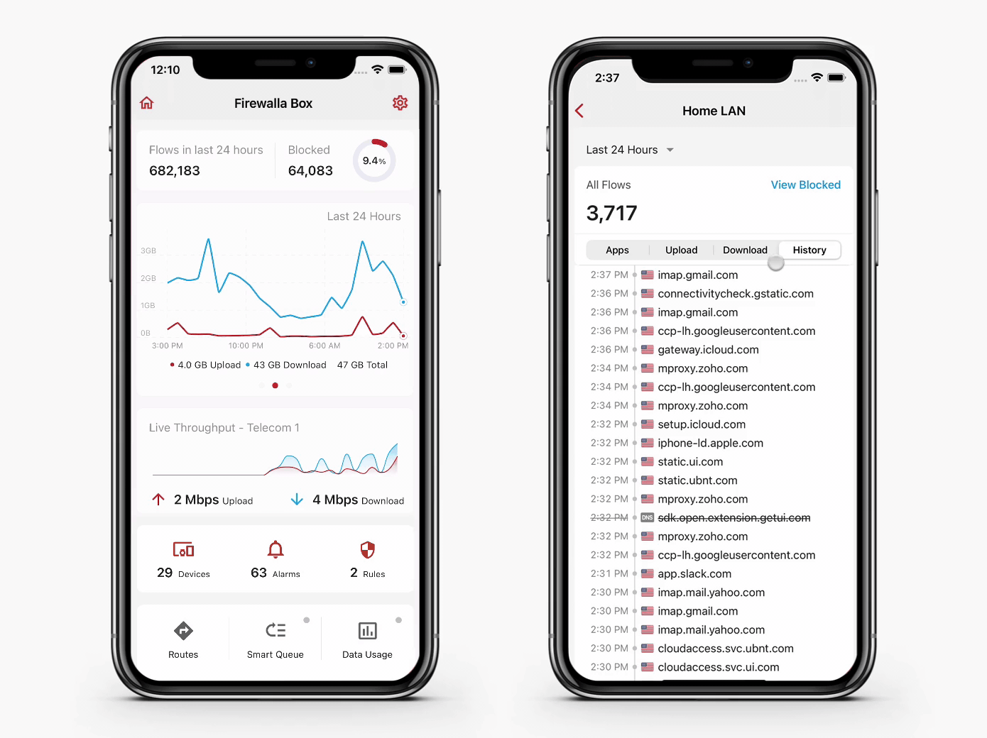 Worried about Internet usage limits or network performance issues? Firewalla Deep Insight provides a summary of hourly, daily or monthly usage, allowing you to dig deep into any device and see the IP or domain address consuming bandwidth and stop it.