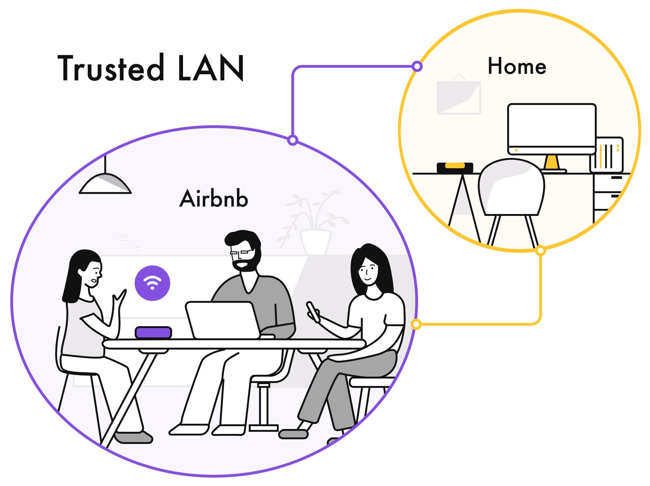 Take the Purple with you, making public and shared WiFi networks safer with a trusted LAN. A trusted LAN is a network segment that's fully under Firewalla's protection, which you have full visibility and control of everything flowing through that network.